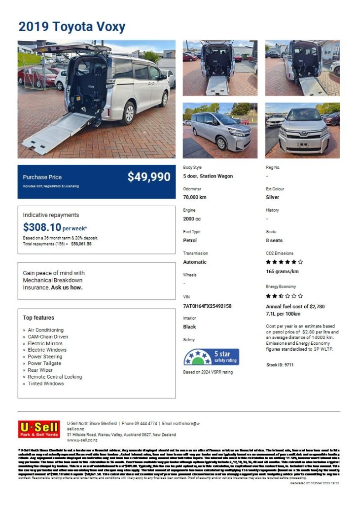 12 months mechanical breakdown insurance. (Not available for vehicles used for hire or rewards)